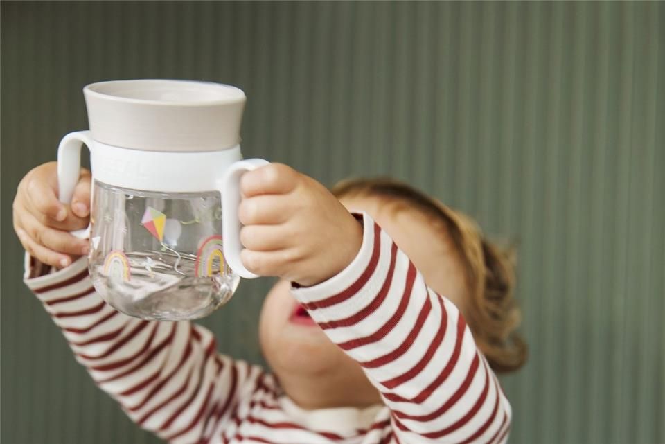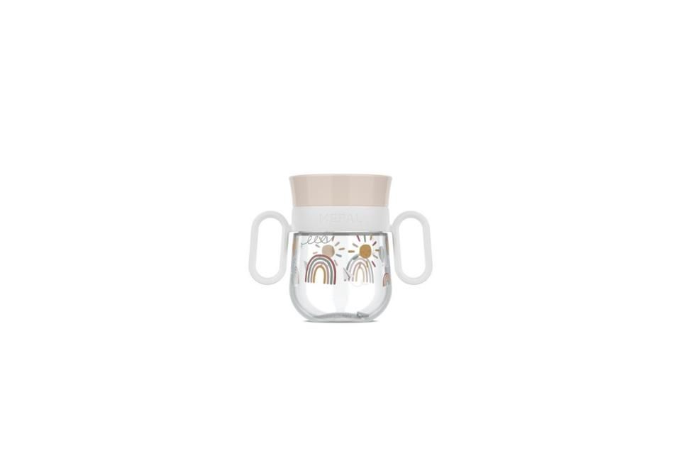 Vaso 360 ° para niños que aprenden a beber. El vaso para niños permite beber por todo el borde de la taza. La tapa transparente permite al niño ver el contenido y evita que todo se derrame a la vez. El vaso 360 °de plástico de alta calidad tiene un contenido de 200 ml y es totalmente a prueba de fugas.
