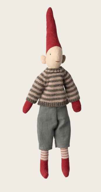 Los duendes Pixy de Maileg son adorables, van vestidos con bonitas prendas navideñas, para jugar con ellos y también quedarán genial en cualquier rincón de casa como decoración navideña.