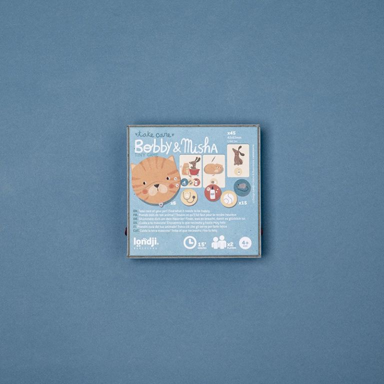 Un juego de memoria para 2 jugadores a partir de 4 años. Con cartas y fichas para cuidar a tu mascota. ¡El que consiga hacerla feliz primero, gana!
