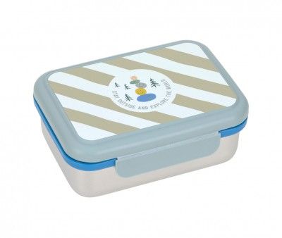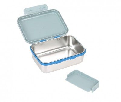 Caja almuerzo de acero inoxidable resistente y duradera. Incluye un separador extraíble para separar los alimentos, ideal para llevar al colegio, al parque o de excursión.
